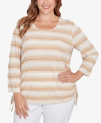 RUBY RD. Plus Size Textured Stripe Drawstring Top In Neutral