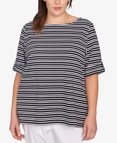 RUBY RD. Plus Size Variegated Stripe Knit Top In Black