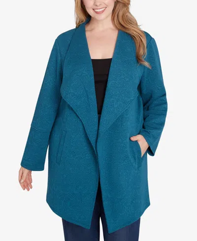RUBY RD. Plus Size Winter Scroll Quilted Knit Jacket In Adriatic