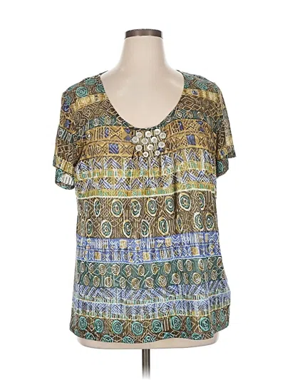 Ruby Rd. Short Sleeve Blouse, Size: 1X. Item Details: Blue, Scoop Neck, Short Sleeves, Beaded, Women's Tops, Cotton/Polyester