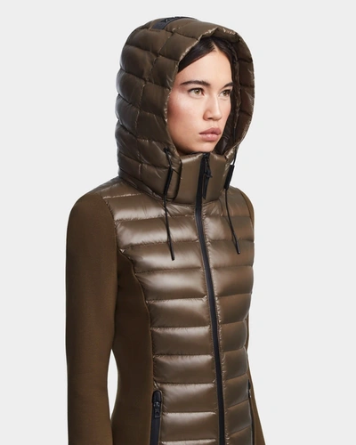 The MARRY by RUDSAK is a fitted light down women’s puffer designed in a combo of quilted recycled semi-gloss with neoprene sleeves and half back. This activewear inspired jacket also has a removable hood to let you adapt your style to the weather. Insulated with RDS certified down and finished with waterproof zippers, this jacket makes for the perfect in between-season closet essential.