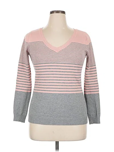 rue21 Pullover Sweater, Size: X-Large. Item Details: Gray, Stripes Pattern, V Neck, 3/4 Sleeve, Junior Tops, Cotton/Polyester/Rayon