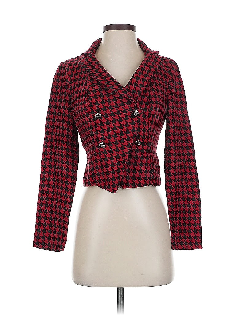 Runway Blazer, Size: 3. Item Details: Red, Houndstooth Pattern, Junior Jackets & Outerwear, Wool/Rayon/Acrylic