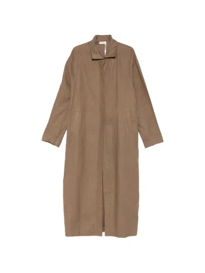 camel collared front welt pockets long sleeves concealed front fastening front slit