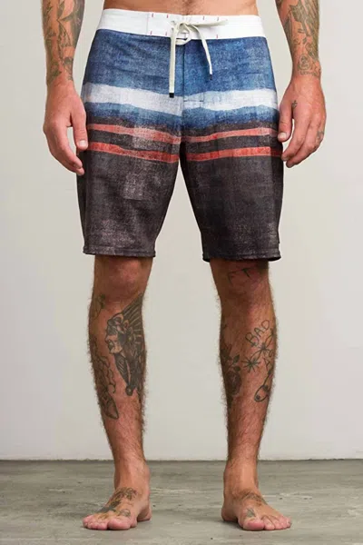 Elevate your beachwear with the Barracuda Trunks by RVCA, featuring a multi-stripe pattern for a striking look. These men's board shorts offer a 4-way stretch design crafted from 85% polyester and 15% elastane, providing optimal performance and comfort. With a practical 19" outseam, they are equipped with a zipper and drawcord closure for a secure fit. Engineered for durability, triple needle stitching and a functional back patch pocket with a flap, zipper, and hook & loop closure complete the design.