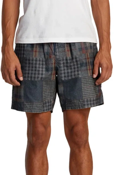 RVCA Escape Drawstring Cotton Walking Shorts In Blue Patchwork