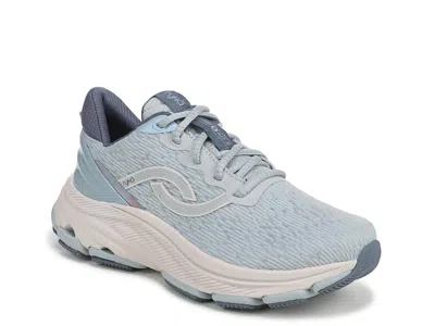 Ryka Devotion X Max 2 - Women's Shoes : Pearl Blue : Get cushioning and shock absorption to the max in this amped-up version of the best-selling Devotion X women's walking shoe. This women's athletic sneaker best for high-performance fitness walking, offering a breathable air mesh, padded tongue and heel collar and a durable molded heel overlay. ; Synthetic resin upper. ; Polyester lining and insole. ; PERFORMANCE TESTED: Proven in lab testing by Heeluxe to provide low deceleration, braking, and impact forces + very high perceived cushioning. ; INNOVATIVE TECH: Full-length RE-ZORB responsive cushioning for shock absorption + impact protection, plus lightweight RE-ZORB LITE pads in the forefoot and heel. ; MADE FOR WOMEN FIT: Designed for a woman's unique foot shape with a narrower heel, roomier toe + softer cushioning. ; CLOSURE: Lace-up front. ; INSOLE: Anatomical insole with extra arch support + heel support and partially recycled ethylene vinyl acetate. ; MIDSOLE: Lightweight ethylene vinyl acetate for soft cushioning + Full-length RE-ZORB responsive cushioning. ; RYKÄSHIELD STAIN PROTECTANT: Product works best by cleaning immediately after a spill by running cold water over the shoe. ; OUTSOLE: Durable two-piece rubber sole for grip + Built-in compression channels for shock absorption. ; Imported. | Ryka Devotion X Max 2 Women's Shoes Pearl Blue : 5 B - Medium, Synthetic