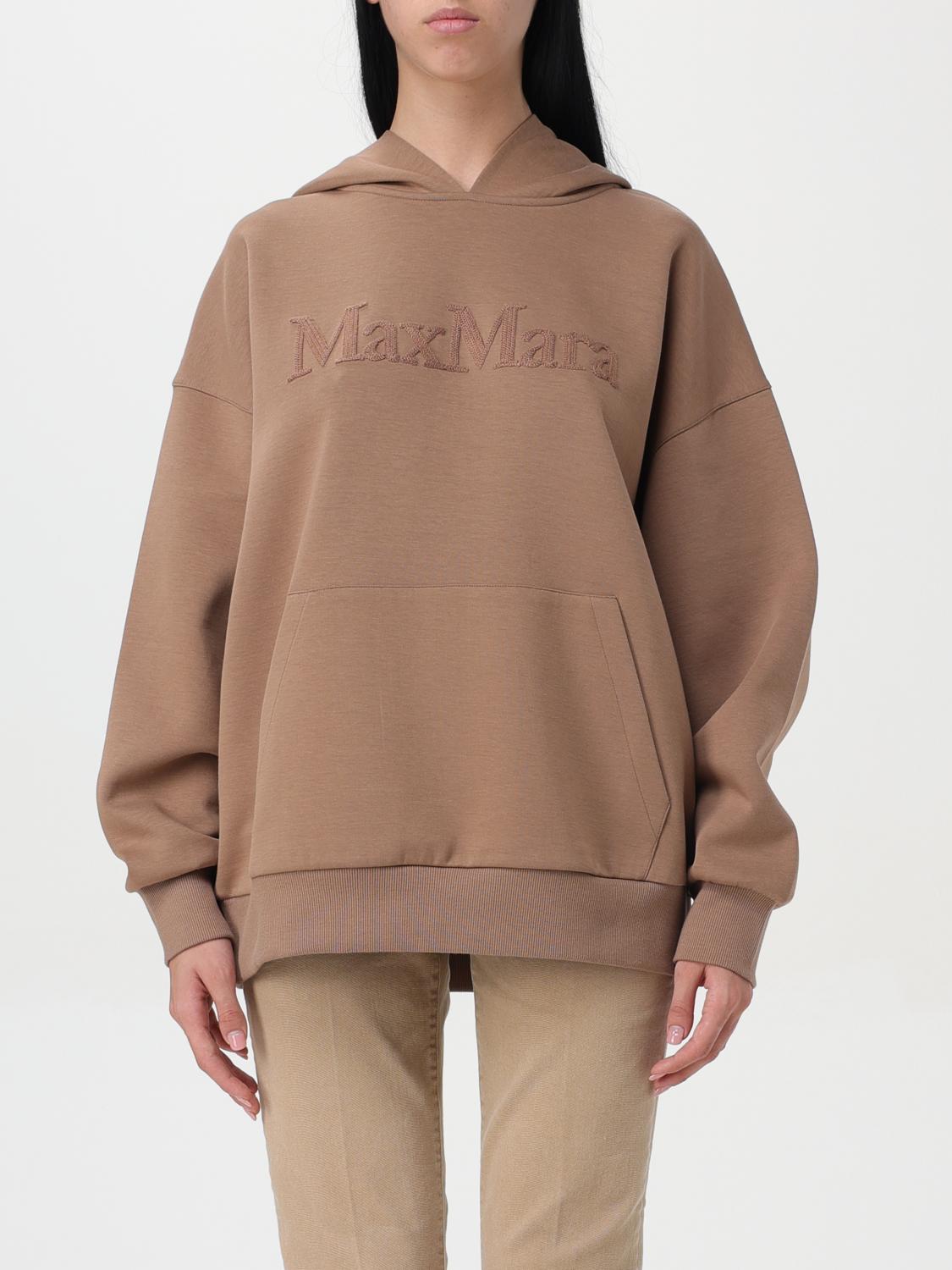 Drawstring hoodie made of soft cotton jersey. Oversize model characterised by long, low-cut sleeves and pouch pocket on the front. Personalised with embroidered Max Mara logo on the front, 3D crochet effect. - Oversize - Embroidered logo on the front - Pouch pocket DESIGNER ID: 2429946031600 004