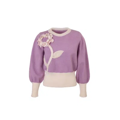 SAACHI Ruffled Bloom Pullover Sweater In Purple