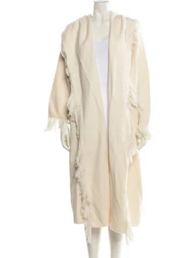 Sablyn Wool Coat Neutrals With Hood Fringe Trim Accent & Collarless Long Open Front Fit: Coats by Sablyn typically fit true to size. | Sablyn Wool Coat in Neutrals, Women's XS