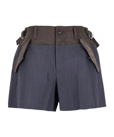 Shorts with belt loops, a concealed fastening, a button closure, multiple pockets and a striped design.