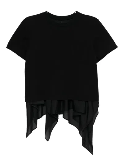 black short sleeves layered asymmetric ruffle cotton chest pocket