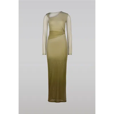 Draped and fitted gradient mesh dress in maxi length with partial lining, asymmetrical neckline, knot detail at waist, extra long sleeves and side slit. This dress is true to size. The model is wearing S and is 175 cm. Gradient mesh fabric Maxi length Partial lining Asymmetrical neckline Knot detail at waist Extra long sleeves Side slit 95% Polyester, 5% Elastane