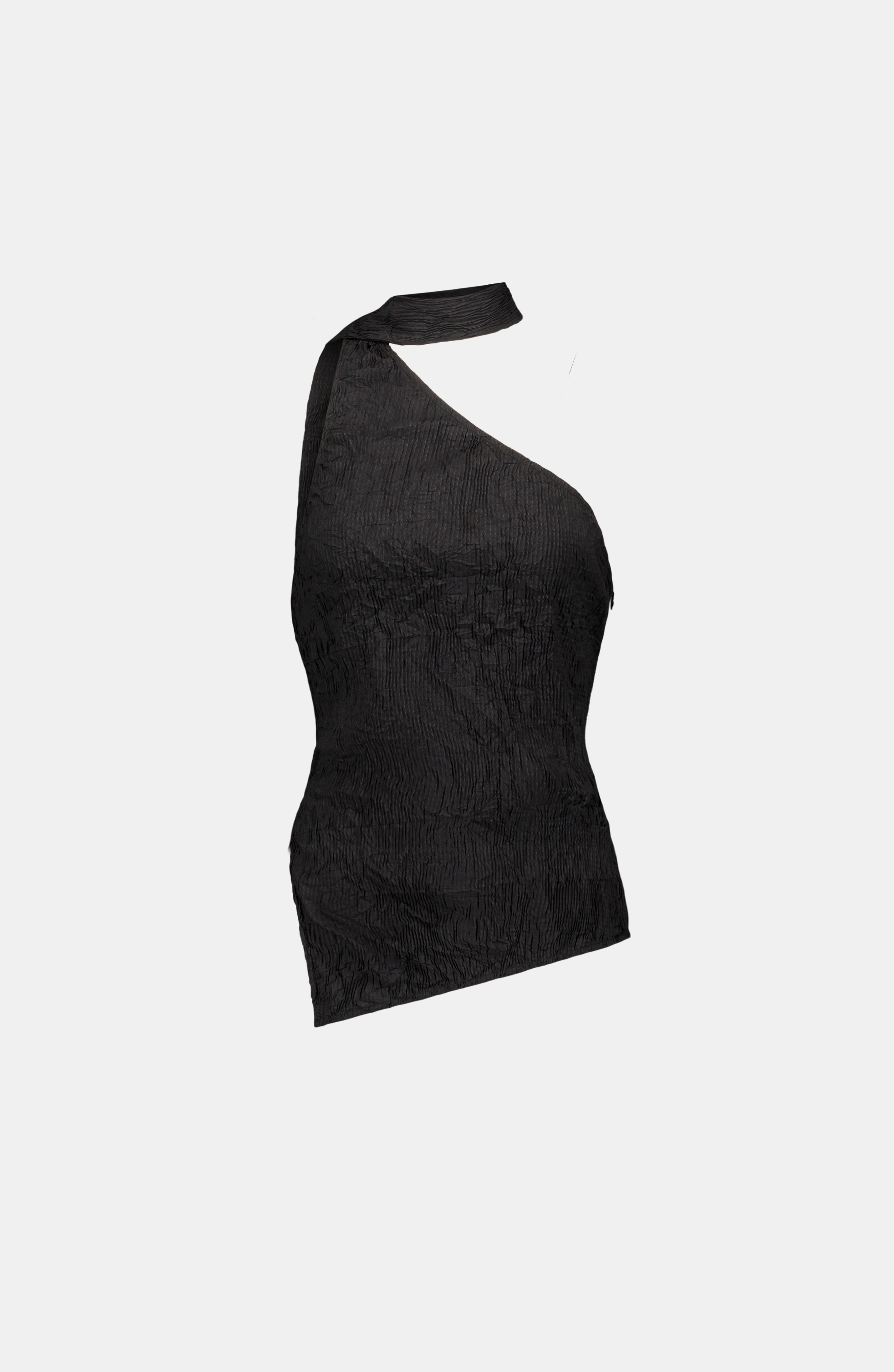 Crinkled one-shoulder top with an asymmetrical hem and a scarf-style closure at the shoulder. Hidden zipper in side seam. 100% polyester Fits true to size Model is 170 cm and wearing size S