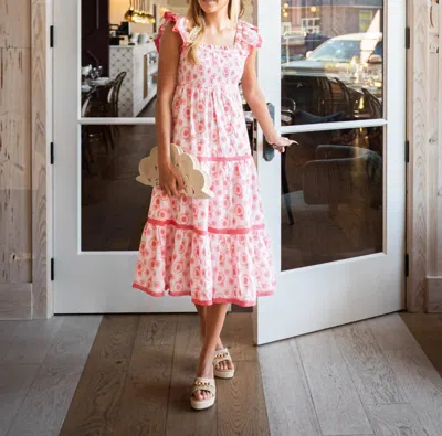 Flutter Sleeve Smocked Midi Dress In Blush / Hibiscus In Multi