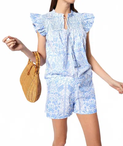 SAIL TO SABLE Flutter Sleeve Top In Tropical Print In Blue