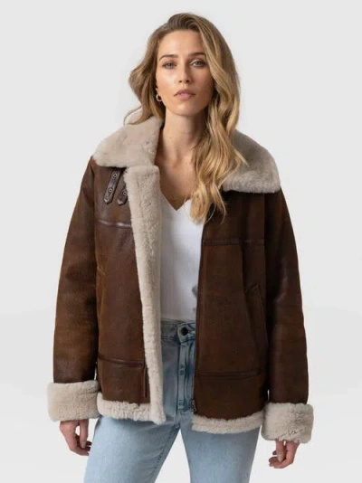 SAINT AND SOFIA Saint + Sofia Amelia Aviator Jacket In Brown