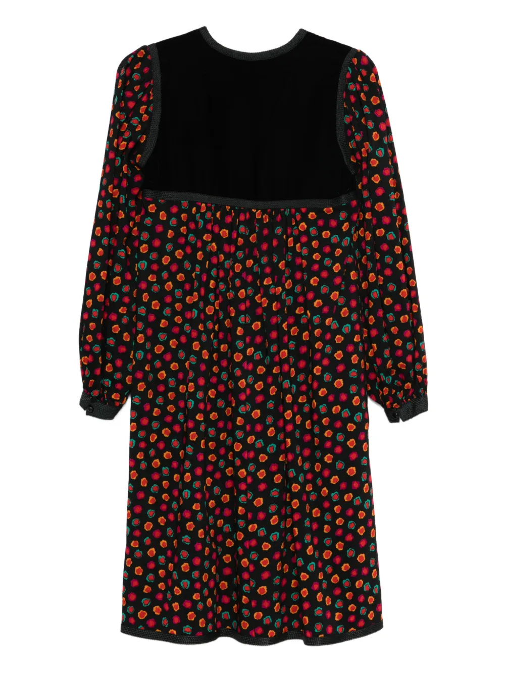 Pre-owned 1977 Geometric-pattern Midi Dress In Black