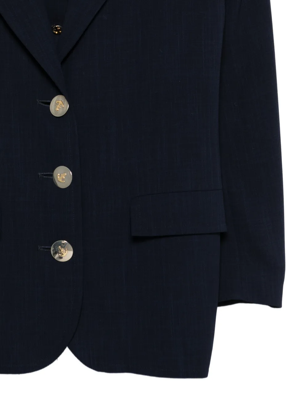 navy wool waistcoat button fastening seam pockets flap pockets Condition: GOOD. This previously owned and used item is in good condition with minimal signs of use. This may include fading of material or plating and scratches.