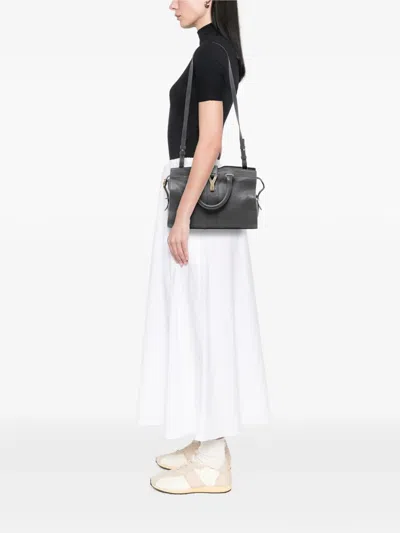 leather body rolled leather handles detachable flat leather strap top strap with magnetic snap closure top zip closure interior zip pocket gray Serial Number: CLD400666Y·0915 Inclusions: shoulder strap. Condition: GOOD. This previously owned and used item is in good condition with minimal signs of use. This may include fading of material or plating and scratches. Please refer to the photos on this product page for a detailed view of the item, including any damages declared.