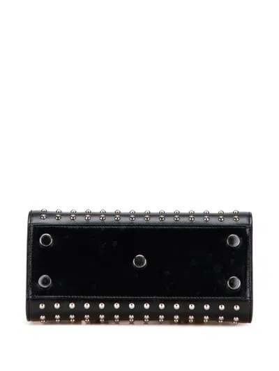 studded leather body rolled leather handles detachable flat leather strap open top interior slip pocket black Inclusions: padlock, key, shoulder strap. Condition: GOOD. This previously owned and used item is in good condition with minimal signs of use. This may include fading of material or plating and scratches. Declared Damages: Handle/Strap Feature(s) Minor Sticky. Please refer to the photos on this product page for a detailed view of the item, including any damages declared.