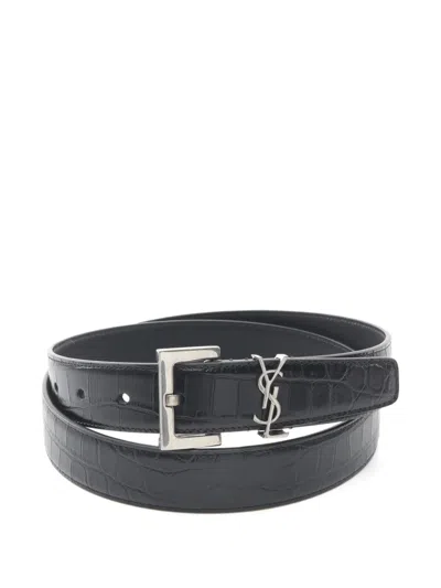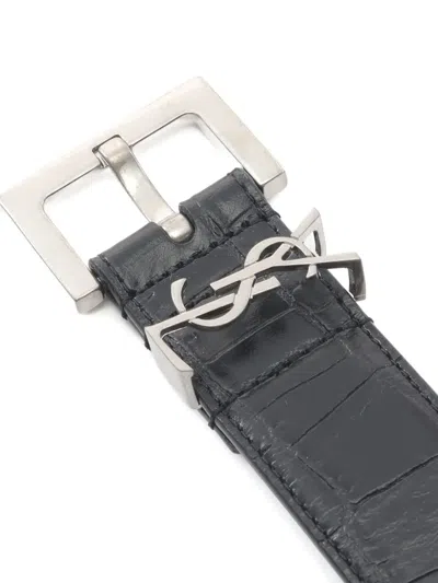 circa 2020s black leather grained texture signature Cassandre logo plaque punched holes pointed tip buckle fastening adjustable fit Condition: UNWORN. This item is previously owned but remains unworn and in its original condition. However, it does not come with its original tags.