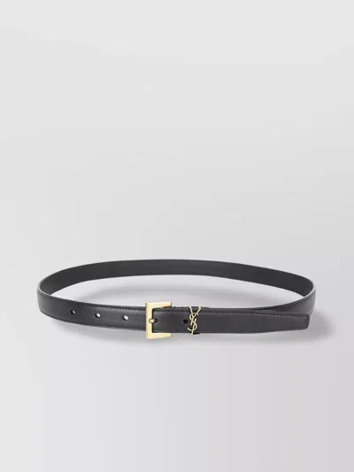 Thin style | Adjustable length | Soft leather material | Gold-tone buckle | Punch hole detailing | Belt loop | YSL logo brass plaque