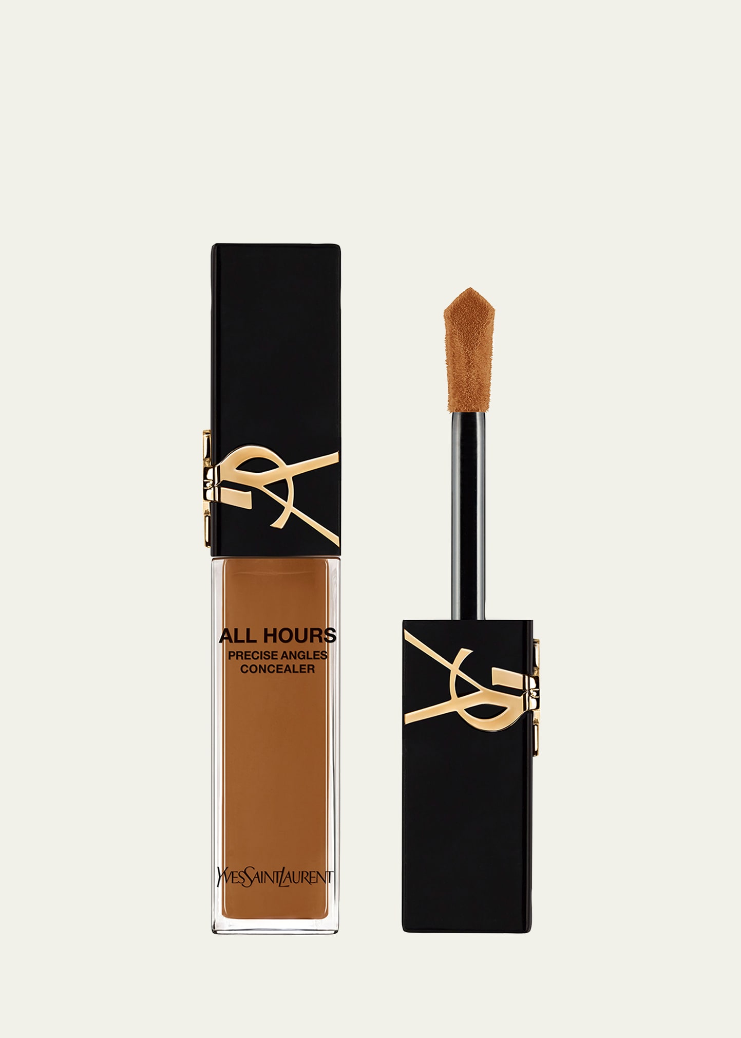 How To Use Conceal under eyes and imperfections with the ultra-precise tip to reach all angles, expertly. Tap with fingertips to apply product, or use a brush to spread or thin out product anywhere you need to conceal. Select a shade that matches your skintone. Sculpt your face with a lighter shade to brighten and bring dimension with the slim side, draw a line from the bottom of the nose to the corner of the mouth. With the broad side of the applicator, draw a line from the end of the cheekbone and connect the lines. Blend the Y to create a sculpted look, to achieve face-lifting makeup results. Enhance complexion with a full-face application using the broad side of the applicator, to achieve a no-makeup makeup look. Tap with fingertips or use a brush to apply product anywhere you need to cover, all over the face. Product Details All Hours Precise Angles Concealer from Yves Saint Laurent is a creamy, creaseless and buildable fluid concealer for up to 24H* full coverage and luminous matte finish. Dark circles, blemishes & redness? Covered. Fine lines & imperfections? Blurred. Face & eye features? Softly sculpted. Infused with caffeine and jasmine flower extracts, this 85% skincare base concealer is weightless, comfortable and moisturising, without drying out the skin. Instantly, the complexion is perfected, and skin looks smoother, softer and firmer. All Hours Precise Angles Concealer can do it all: Conceal, Sculpt, Enhance, thanks to its ultra precise applicator, for multi-use application. Conceal under eyes and imperfections with the ultra-precise tip to reach all angles, expertly sculpt face features with broad sides, or enhance complexion with a full face-face application. CONSUMERS AGREE*: 95.3% observed their skin as looking smoother 90.7% said it felt softer 83.3% said their fine lines and imperfections were less visible 77.3% agreed that their skin looked firmer *Consumer test on 165 women in US. *Consumer test on bare skin after 14 days on 165 US consumers