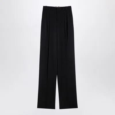 SAINT LAURENT Black Wool Wide Trousers In Multi