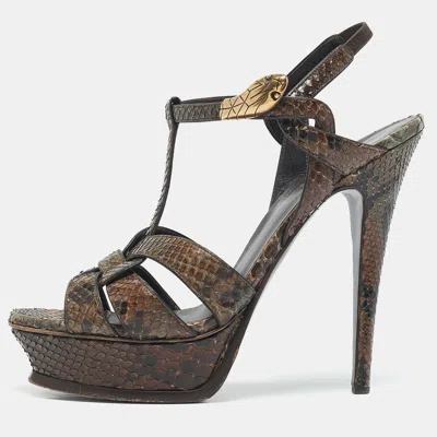 Pre-owned Brown Python Leather Platform Sandals Size 39