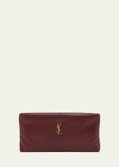 SAINT LAURENT Calypso Ziptop Ysl Clutch Bag In Smooth Padded Leather In Rogue Merlot