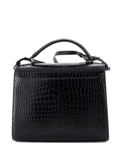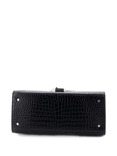Pre-owned Cassandra Top Handle Bag Crocodile Embossed Leather Medium Satchel In Black