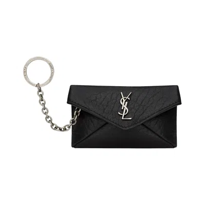 Saint Laurent Cassandre Envelope Key Case In Grained Leather 'Nero'
