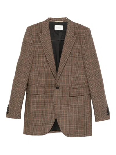SAINT LAURENT Checked Single-breasted Blazer In Brown