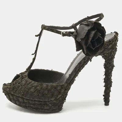 Pre-owned Dark Brown Python Platform Sandals Size 39.5