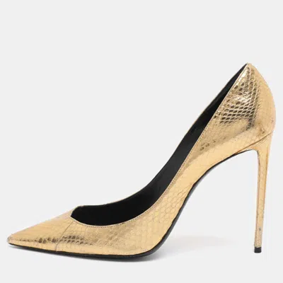 Pre-owned Gold Python Embossed Leather Zoe Pointed Toe Pumps Size 42
