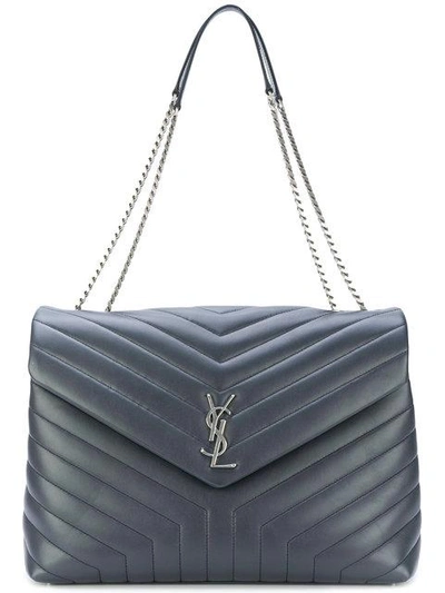 Saint Laurent epitomises a rock'n'roll edge to everyday essential pieces and accessories - fitted within a feminine silhouette and a refined finish. This dark grey leather Loulou shoulder bag from Saint Laurent features chain and leather straps, a foldover top with magnetic closure, a quilted effect, multiple interior compartments and an internal zipped pocket.