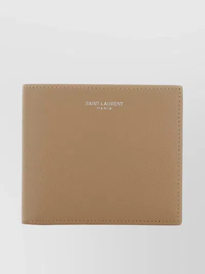 SAINT LAURENT Leather Wallet With Bi-fold Design And Textured Finish In Brown