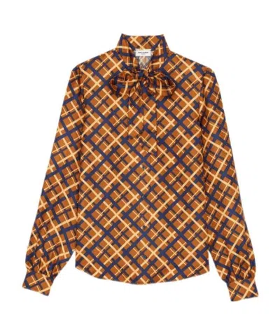 SAINT LAURENT Long-sleeved Button Blouse In Brown