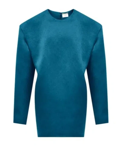 Silk satin lining, concealed back zip closure, concealed side pockets and a round neckline.