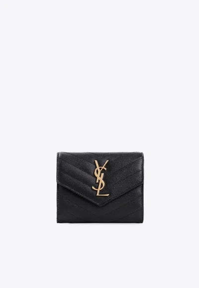 SAINT LAURENT Mini Cassandre Envelope Wallet In Black