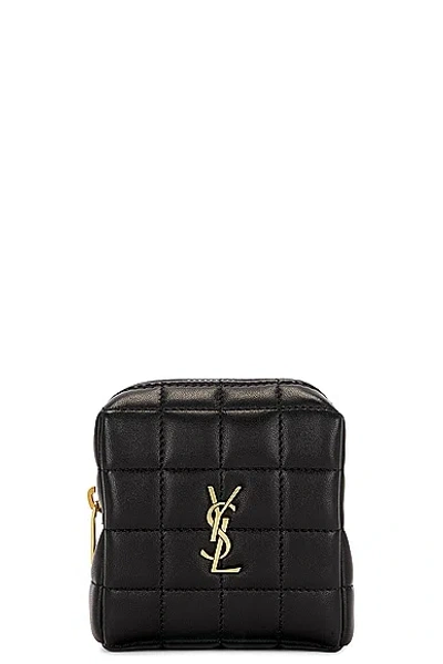 Saint Laurent Mini Square Pouch in Noir - Black. Size all. Quilted leather exterior with twill lining. Made in Italy. Top zipper closure. One main compartment. Aged gold-tone Cassandre at front. Measures approx 3.5 W x 3.5 H x 1.75 D. SLAU-WY2661. 778102-AABVP-1000. About the designer: SAINT LAURENT has been influencing and revolutionizing the fashion industry since the debut of its iconic ‘Rive Gauche’ collection in 1966 - the couture house was the first to create a ready-to-wear capsule. The sleek, precisely tailored staples, like the signature biker jackets, transcend seasons and trends. Creative Director Anthony Vaccarello continues to honor the label’s illustrious reputation by reintroducing cult styles, including the ‘Lou’ handbag and ‘Tribute’ sandals.