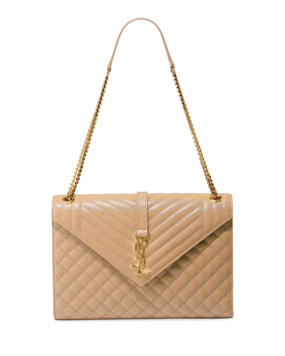 SAINT LAURENT Monogram Ysl V-flap Large Tri-quilt Envelope Chain Shoulder Bag - Golden Hardware In Dark Beige