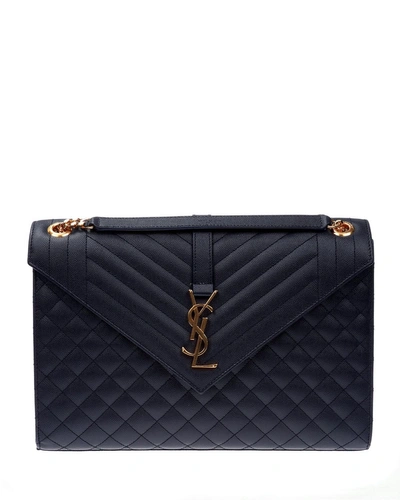Monogram Ysl V-flap Large Tri-quilt Envelope Chain Shoulder Bag - Golden Hardware In Deep Marine/ Deep Marine