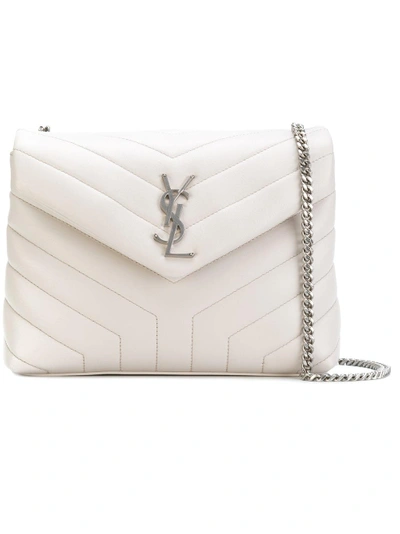 Saint Laurent epitomises a rock'n'roll edge to everyday essential pieces and accessories - fitted within a feminine silhouette and a refined finish. This white matelassé calf leather small LouLou chain bag is a wardrobe staple and features a chain shoulder strap, silver-tone hardware, a front logo plaque, an envelope style, a foldover top with magnetic closure, an internal logo stamp, a full lining, an interior zipped compartment, an internal slip pocket and an internal logo plaque.