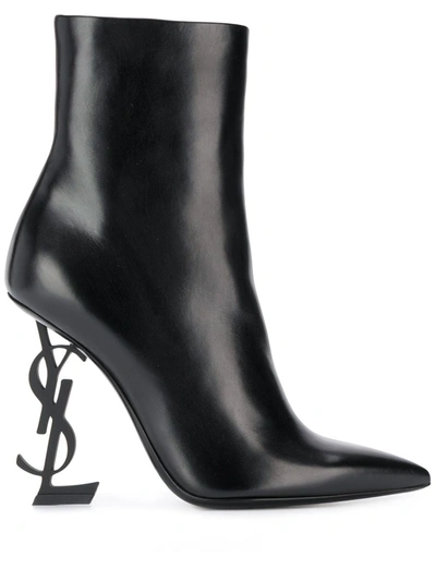 SAINT LAURENT Opyum Leather Pointy-toe Ankle Boots In Nero