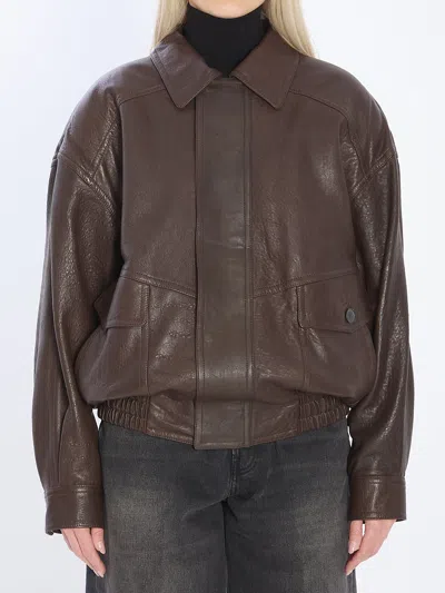 SAINT LAURENT Pointed-collar Balloon-seelves Lambskin Jacket In Brown