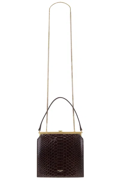 Saint Laurent Python Nuit Blanche Chain Bag in Coconut Tree & Dark Coconut Tree - Cream. Size all. Reticulated python exterior with leather lining and gold-tone hardware. Made in Italy. Square clasp closure. One main compartment with single card slot. Measures approx 6.7 W x 6.7 H x 1.5 D Top handle with a 5.5 drop Chainlink shoulder strap with a 20.5 drop.. SLAU-WY2963. 709969-EAA5A-2589. About the designer: SAINT LAURENT has been influencing and revolutionizing the fashion industry since the debut of its iconic ‘Rive Gauche’ collection in 1966 - the couture house was the first to create a ready-to-wear capsule. The sleek, precisely tailored staples, like the signature biker jackets, transcend seasons and trends. Creative Director Anthony Vaccarello continues to honor the label’s illustrious reputation by reintroducing cult styles, including the ‘Lou’ handbag and ‘Tribute’ sandals.