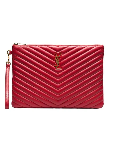 SAINT LAURENT Red Monogram Medium Pouch With Handle