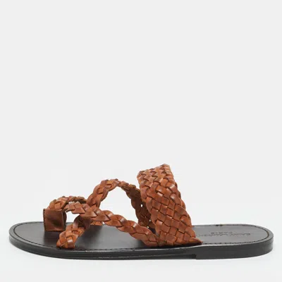Pre-owned Size 43 Brown Woven Leather Slide Sandals